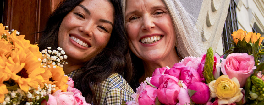 The Moonstruck is the ultimate example: it includes The Luna, a glamorous bouquet that needs no introduction thanks to the eye-catching statement it makes, along with a Malin+Goetz vetiver votive candle. A warm glow and a sophisticated arrangement make the perfect partners for a classy gift to your mom. Another option is The Reva, a must for the always-busy mom who could use a little time to herself. The sweet pink arrangement is complemented by a trio of bath bombs from milk + honey.