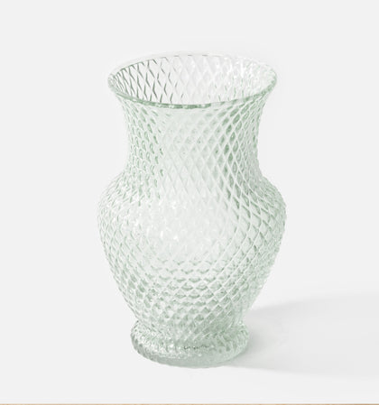 3.75" x 8" White Ceramic Vase with a Speckled, Demi-Gloss Finish