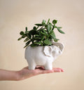 Includes:4" Jade Succulent in a 7" x 4" x 5.25" Glossy Off-White Elephant Shaped Ceramic Vessel