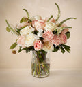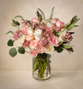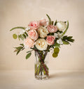 Discover the art of understated affection with this blend of delicate pink and creamy white roses. We like to think it offers a beautifully subtle way to send your love. Perfect for conveying deep emotions with a soft, elegant touch. We're committed to delivering bouquets that match our photos. Occasionally, we might replace certain flowers due to seasonal availability, but your bouquet's overall appearance will remain unchanged.