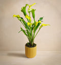 Pure springtime cheer in floral form. Bright yellow calla lilies bring sculptural elegance and unmistakable optimism, paired with a fluted yellow vessel for a bold, monochromatic moment. Clean, modern, and unapologetically yellow. A joyful accent designed to light up any space.