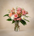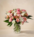 With effortless grace and undeniable appeal, this bouquet lives up to its name with every delicate stem. Featuring lush peach garden roses, light pink spray roses, and pristine white ranunculus, this bouquet exudes all the refined beauty that spring offers. Blush delphinium adds a touch of whimsy, while pink hypericum and green coccolus create depth and texture. Perfect for celebrating life’s most glamorous moments, both mundane and extraordinary, this show-stopper that makes every occasion unforgettable.