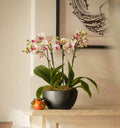 Light: Orchids prefer bright, indirect light. Place your orchid about 1 - 3 feet back from a South or West facing window to ensure the plant gets bright light but doesn’t get burned by the direct sun.