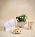 A birthday gift with charm, sweetness, and a little symbolism built in. A hardy jade succulent is planted in a playful ceramic elephant-shaped pot, a classic symbol of good luck and prosperity. Paired with Douglas Sweets’ Vanilla Lemon Poppy shortbread cookies and a Meri Meri candle birthday card, it’s a thoughtful way to celebrate another year. Lighthearted, lasting, and designed to feel personal.