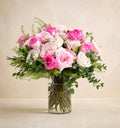 When you want a rose garden without having to tend to a rose garden, we have just the bouquet for you. Step into the tranquil world of gardening with a bouquet that captures the beauty of blooming roses. Soft sand-colored roses, delicate light pink garden roses, and vibrant pink roses create a harmonious symphony of hues, while lush greenery adds depth and balance. This bouquet evokes the calmness of a secluded rose garden in full bloom, perfect for charming allure of spring.